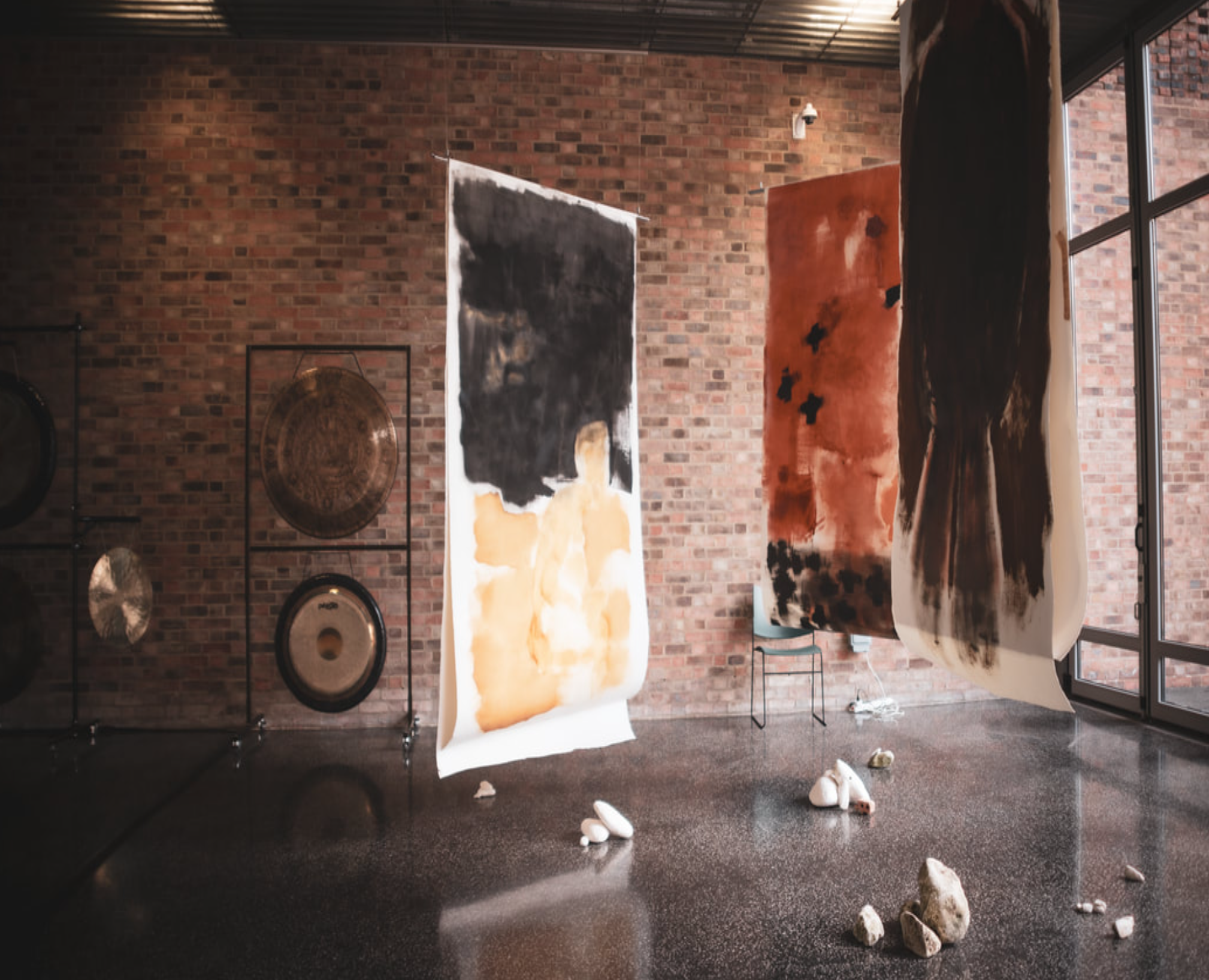 Two installations by Sarah Needham become one, exploring the dark and light sides of grief through the depth and history of natural pigments.
